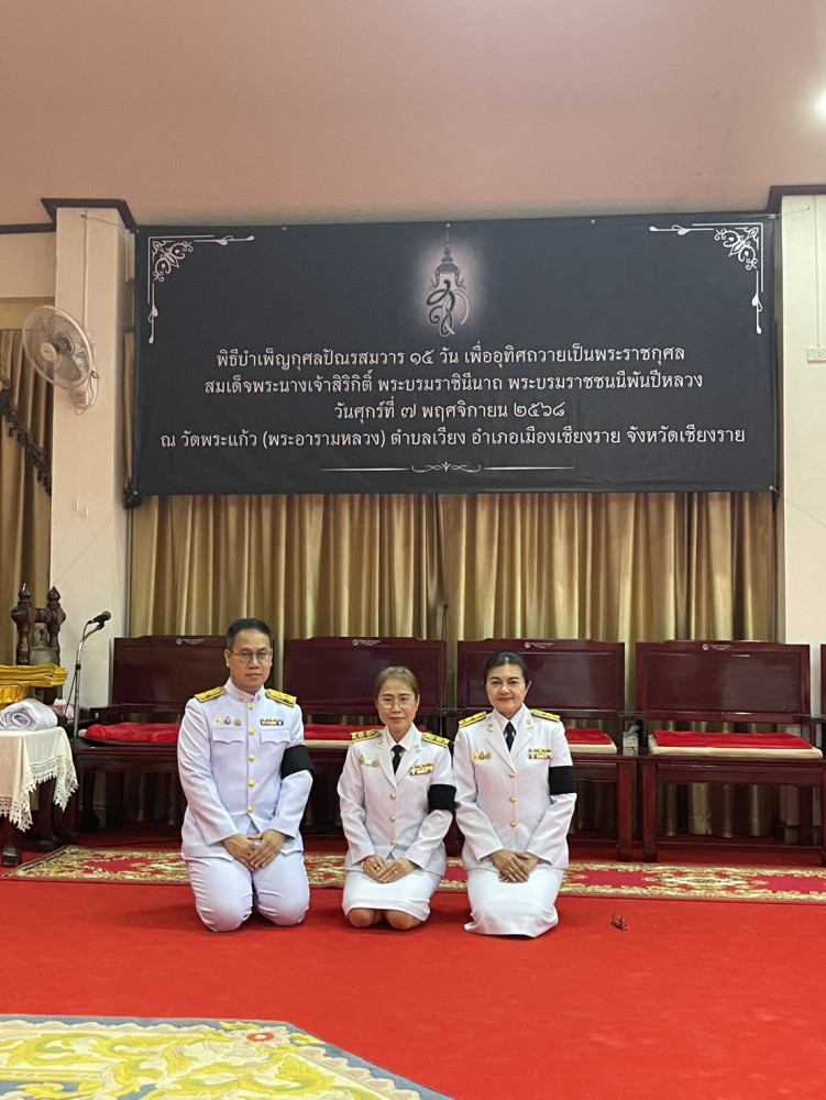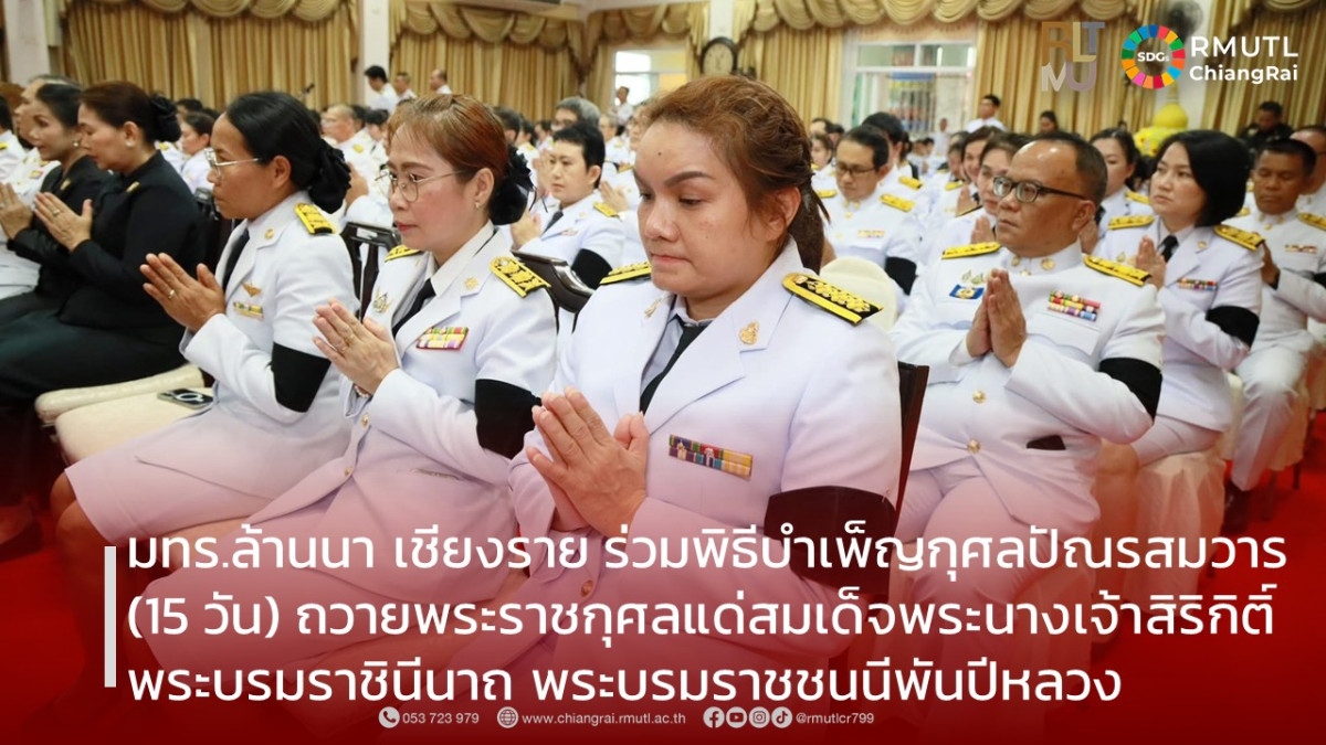 เมื่อวันที่ 7 พฤศจิกายน 2568 เวลา 17.00 น. มหาวิทยาลัยเทคโนโลยีราชมงคลล้านนา เชียงราย นำโดย ผู้ช่วยศาสตราจารย์ ดร.ณภัทร ทิพย์ศรี รองคณบดีคณะบริหารธุรกิจและศิลปศาสตร์ พร้อมด้วยคณาจารย์ เข้าร่วม พิธีบำเพ็ญกุศลปัณรสมวาร (15 วัน) เพื่อถวายพระราชกุศลแด่ สมเด็จพระนางเจ้าสิริกิติ์ พระบรมราชินีนาถ พระบรมราชชนนีพันปีหลวง ณ ศาลาวัดพระแก้ว พระอารามหลวง อำเภอเมืองเชียงราย จังหวัดเชียงราย