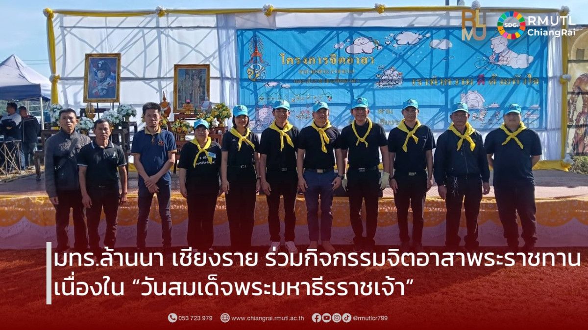 วันที่ 26 พฤศจิกายน 2568 มหาวิทยาลัยเทคโนโลยีราชมงคลล้านนา เชียงราย นำโดย นายสุรเชษฐ์ ชมภูมิ่ง หัวหน้างานบริการ พร้อมด้วยบุคลากร ร่วมกิจกรรม จิตอาสาพระราชทาน เนื่องในวันคล้ายวันสวรรคตของ พระบาทสมเด็จพระมงกุฎเกล้าเจ้าอยู่หัว (รัชกาลที่ 6) หรือที่รู้จักในนาม “วันสมเด็จพระมหาธีรราชเจ้า” / “วันวชิราวุธ” กิจกรรมจัดขึ้น ณ ลานพญาเม็งรายหลวง หมู่ 10 ตำบลทรายขาว อำเภอพาน จังหวัดเชียงราย เพื่อร่วม น้อมรำลึกในพระมหากรุณาธิคุณ ของรัชกาลที่ 6 ผู้ทรงมีคุณูปการสำคัญต่อประเทศไทยทั้งด้านการศึกษา การพัฒนาชาติ และการก่อตั้งลูกเสือไทย