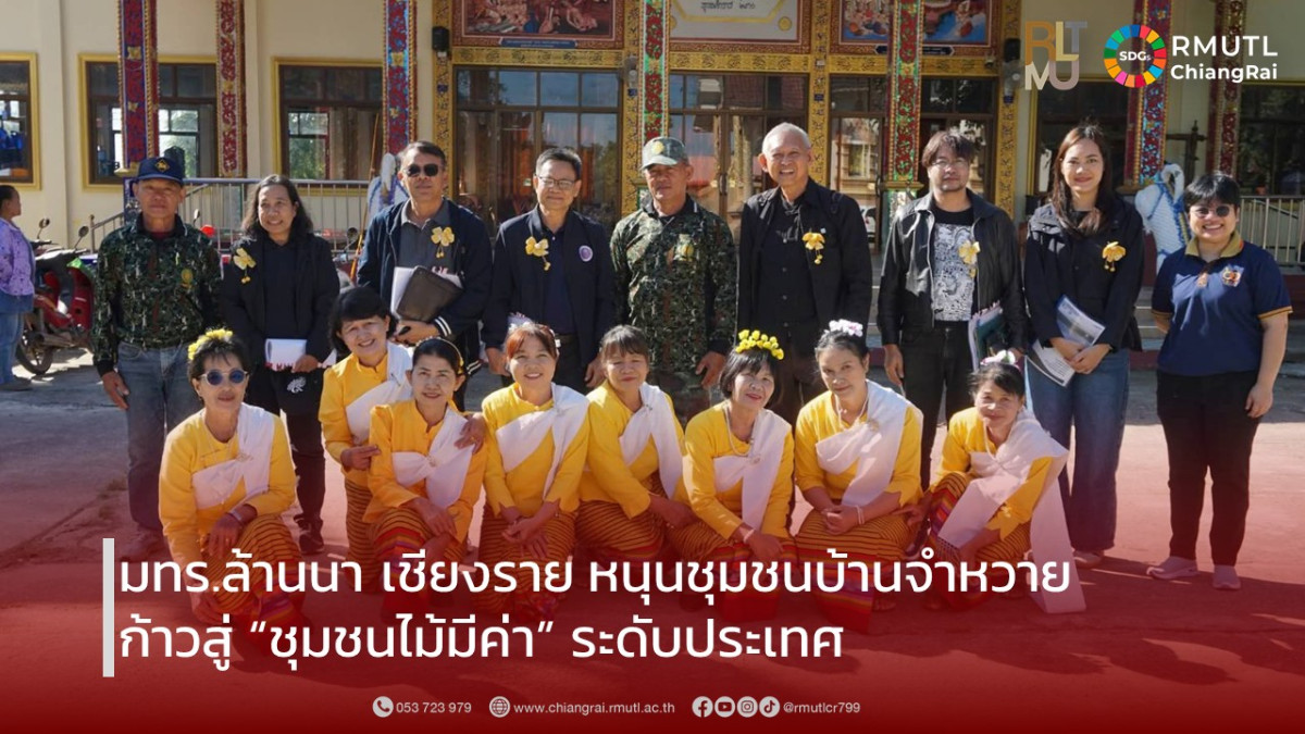 วันที่ 25 พฤศจิกายน 2568 มหาวิทยาลัยเทคโนโลยีราชมงคลล้านนา เชียงราย ภายใต้การนำของ ผู้ช่วยศาสตราจารย์หฤทัยรัตน์ จันต๊ะคาด อาจารย์คณะวิศวกรรมศาสตร์ และที่ปรึกษาชุมชน ร่วมกับ ชุมชนบ้านจำหวาย ตำบลดอยลาน อำเภอเมือง จังหวัดเชียงราย และเครือข่ายชุมชนสร้างประโยชน์เพื่อสังคม CHIANG RAI SMART MODEL ให้การต้อนรับ คณะกรรมการโครงการประกาศเกียรติคุณ “ชุมชนไม้มีค่า” ระดับประเทศ ครั้งที่ 3 ประจำปี 2568