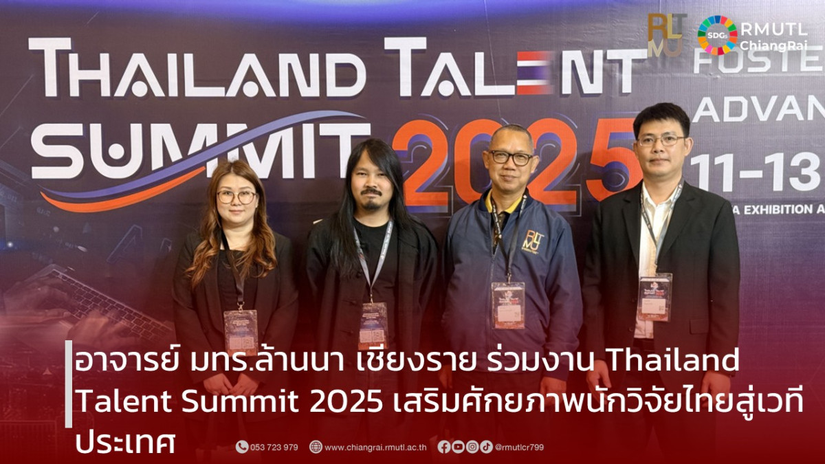 ผู้ช่วยศาสตราจารย์ ดร.มนต์ชัย ปัญญาทอง อาจารย์ประจำคณะวิศวกรรมศาสตร์ มหาวิทยาลัยเทคโนโลยีราชมงคลล้านนา เชียงราย เข้าร่วมงาน Thailand Talent Summit 2025 ระหว่างวันที่ 11–13 ธันวาคม 2568 ณ ศูนย์ประชุมนานาชาติพัทยา (PEACH) จังหวัดชลบุรี ซึ่งเป็นเวทีสำคัญระดับประเทศในการแลกเปลี่ยนองค์ความรู้ด้านการพัฒนาศักยภาพนักวิจัยและโครงสร้างพื้นฐานทางวิทยาศาสตร์ วิจัย และนวัตกรรมของไทย
