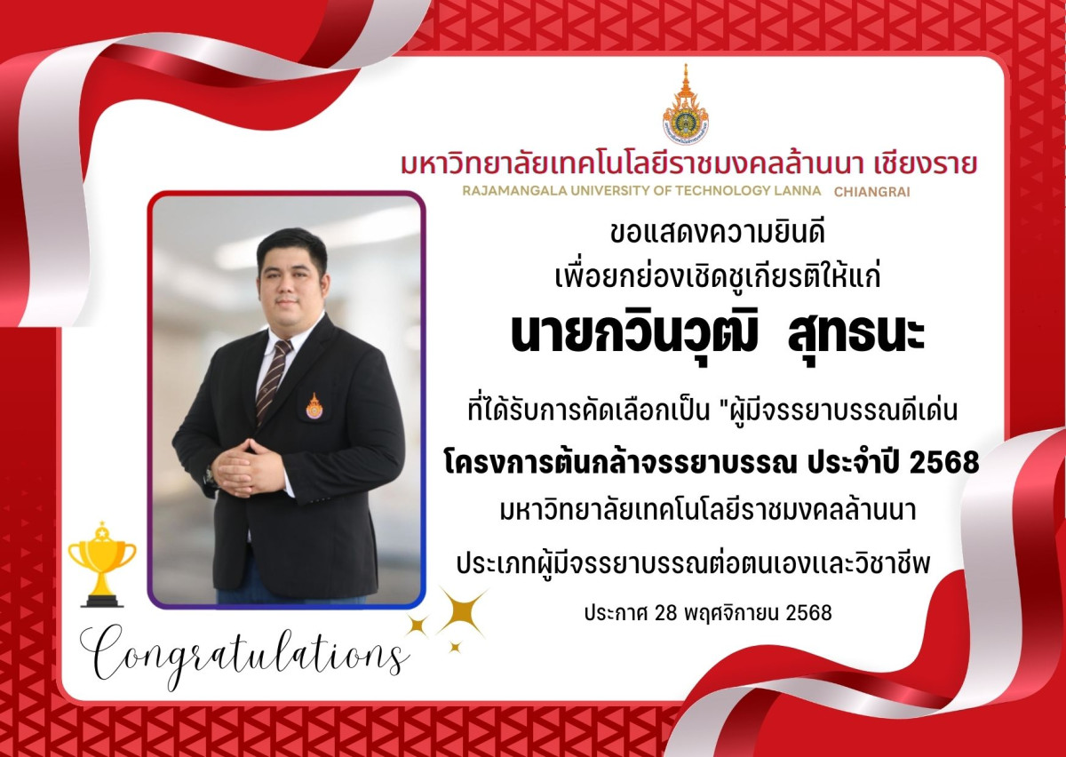 ขอแสดงความยินดีกับบุคลากรผู้ได้รับการคัดเลือกเป็น “ผู้มีจรรยาบรรณดีเด่น”