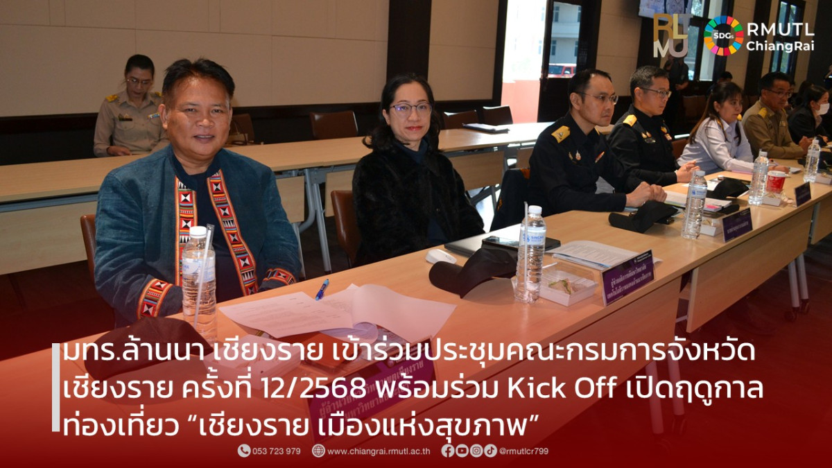 วันที่ 25 ธันวาคม 2568 นางโสมวรรณ ทิพจร ผู้อำนวยการกองบริหารทรัพยากร มหาวิทยาลัยเทคโนโลยีราชมงคลล้านนา เชียงราย เข้าร่วมการประชุมคณะกรมการจังหวัดเชียงรายและหัวหน้าส่วนราชการประจำจังหวัด ครั้งที่ 12/2568 ประจำเดือนธันวาคม 2568 ณ หอประชุมใหญ่ ศาลากลางจังหวัดเชียงราย โดยมี นายชูชีพ พงษ์ไชย ผู้ว่าราชการจังหวัดเชียงราย เป็นประธานในการประชุม