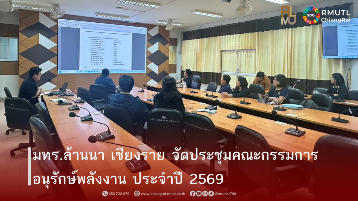 วันที่ 7 มกราคม 2569 หน่วยอนุรักษ์พลังงาน งานบริการ กองบริหารทรัพยากร มหาวิทยาลัยเทคโนโลยีราชมงคลล้านนา เชียงราย จัดการประชุมคณะกรรมการการอนุรักษ์พลังงาน และคณะผู้ตรวจประเมินการจัดการพลังงาน ประจำปี 2569 เพื่อรับฟังรายงานผลการดำเนินงานด้านการอนุรักษ์พลังงานของมหาวิทยาลัย พร้อมทั้งร่วมแสดงความคิดเห็น ข้อเสนอแนะ เพื่อทบทวน วิเคราะห์ และปรับปรุงแนวทางการดำเนินงานด้านการจัดการพลังงานให้มีประสิทธิภาพและเกิดความยั่งยืน ณ ห้องประชุม 1 ชั้น 3 อาคารสำนักงานบริหาร มหาวิทยาลัยเทคโนโลยีราชมงคลล้านนา เชียงราย โดยมีคณะกรรมการและผู้ที่เกี่ยวข้องเข้าร่วมประชุมอย่างพร้อมเพรียง สะท้อนถึงความมุ่งมั่นของมหาวิทยาลัยในการส่งเสริมการใช้พลังงานอย่างรู้คุณค่า และสนับสนุนนโยบายการอนุรักษ์พลังงานตามแนวทางการพัฒนาอย่างยั่งยืน
