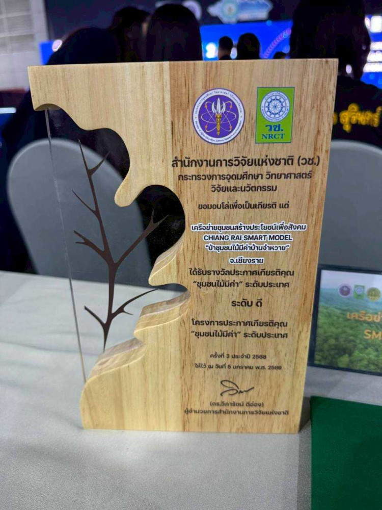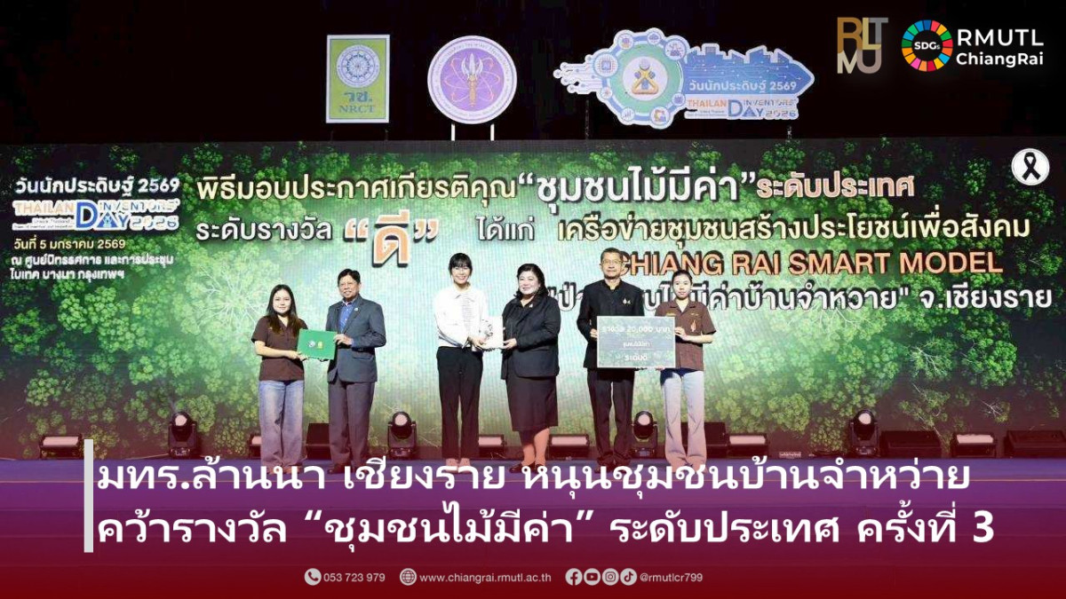 มหาวิทยาลัยเทคโนโลยีราชมงคลล้านนา เชียงราย โดย ผู้ช่วยศาสตราจารย์หฤทัยรัตน์ จันต๊ะคาด อาจารย์ประจำคณะวิศวกรรมศาสตร์ นำทีมคณะวิจัยและนักศึกษา เข้าร่วมเป็นพี่เลี้ยงและที่ปรึกษาให้กับเครือข่ายชุมชนสร้างประโยชน์เพื่อสังคม Chiangrai Smart Model “ป่าชุมชนไม้มีค่าบ้านจำหว่าย” ตำบลดอยลาน อำเภอเมืองเชียงราย จังหวัดเชียงราย เพื่อเข้าร่วมการคัดเลือกเป็น “ชุมชนไม้มีค่า ระดับประเทศ ครั้งที่ 3 ประจำปี 2568” จัดโดย สำนักงานการวิจัยแห่งชาติ (วช.) กระทรวงการอุดมศึกษา วิทยาศาสตร์ วิจัยและนวัตกรรม ร่วมกับ กรมป่าไม้ สำนักงานพัฒนาเศรษฐกิจจากฐานชีวภาพ (องค์การมหาชน) และธนาคารเพื่อการเกษตรและสหกรณ์การเกษตร (ธ.ก.ส.)