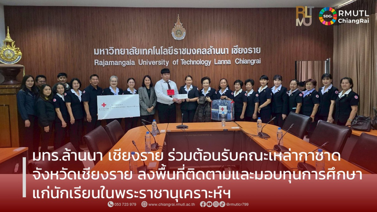 วันที่ 20 มกราคม 2569 มหาวิทยาลัยเทคโนโลยีราชมงคลล้านนา เชียงราย นำโดย นางณัชชา ทิพย์ประเสริฐ ผู้อำนวยการกองการศึกษา พร้อมด้วยบุคลากร ร่วมให้การต้อนรับ นางพรจิตร สุขสมบูรณ์ รองนายกเหล่ากาชาดจังหวัดเชียงราย พร้อมด้วยคณะสมาชิกเหล่ากาชาดจังหวัดเชียงราย ร่วมกับคณะกรรมการสมาชิกกิ่งกาชาดอำเภอพาน นำโดย นางโสภา ปกป้องบวรกุล นายกกิ่งกาชาดอำเภอพาน ในโอกาสลงพื้นที่ติดตาม ตรวจเยี่ยม และให้กำลังใจนักเรียนในพระราชานุเคราะห์ฯ ในการนี้ คณะเหล่ากาชาดจังหวัดเชียงรายได้มอบทุนการศึกษาและเครื่องกันหนาวให้แก่ นักเรียนในพระราชานุเคราะห์สมเด็จพระกนิษฐาธิราชเจ้า กรมสมเด็จพระเทพพระรัตนราชสุดา สยามบรมราชกุมารี ประจำปีการศึกษา 2568 ในเขตพื้นที่อำเภอพาน จังหวัดเชียงราย เพื่อเป็นการช่วยเหลือ ส่งเสริมโอกาสทางการศึกษา และบรรเทาความเดือดร้อนในช่วงฤดูหนาว