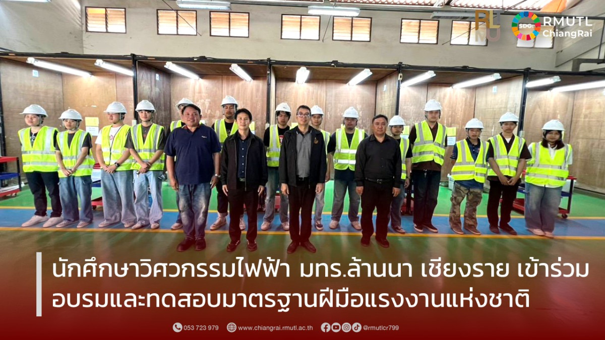 มหาวิทยาลัยเทคโนโลยีราชมงคลล้านนา เชียงราย คณะวิศวกรรมศาสตร์ สาขาวิชาวิศวกรรมไฟฟ้า ได้นำนักศึกษาเข้าร่วมการอบรมและทดสอบมาตรฐานฝีมือแรงงานแห่งชาติ สาขาช่างไฟฟ้าภายในอาคาร ระดับ 1 ณ สถาบันพัฒนาฝีมือแรงงาน 20 เชียงราย ระหว่างวันที่ 24–25 มกราคม 2569 การอบรมดังกล่าวมุ่งเน้นให้นักศึกษาได้เรียนรู้และฝึกปฏิบัติเกี่ยวกับมาตรฐานการติดตั้งระบบไฟฟ้าภายในอาคาร ตามหลักเกณฑ์และข้อกำหนดด้านความปลอดภัย เพื่อยกระดับทักษะวิชาชีพให้เป็นไปตามมาตรฐานแรงงานแห่งชาติ