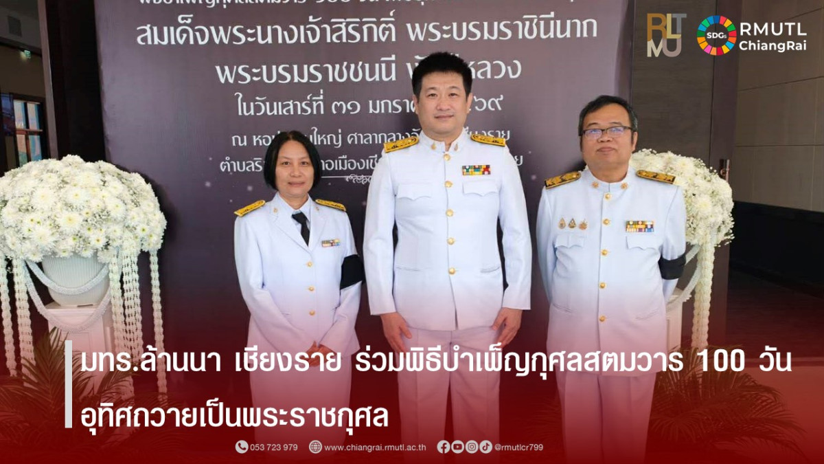เมื่อวันที่ 31 มกราคม พ.ศ. 2569 เวลา 08.00 น. ณ อาคารหอประชุมใหญ่ ศาลากลางจังหวัดเชียงราย มหาวิทยาลัยเทคโนโลยีราชมงคลล้านนา เชียงราย โดยคณาจารย์จากคณะวิศวกรรมศาสตร์ นำโดย ดร.อรสา ธรรมสรางกูร, ผู้ช่วยศาสตราจารย์ ดร.ศิระพงศ์ ลือชัย และ อาจารย์พิเชษฐ กันทะวัง เป็นตัวแทนมหาวิทยาลัยฯ เข้าร่วมพิธีบำเพ็ญกุศลสตมวารครบ 100 วัน อุทิศถวายเป็นพระราชกุศลแด่ สมเด็จพระนางเจ้าสิริกิติ์ พระบรมราชินีนาถ พระบรมราชชนนีพันปีหลวง พิธีดังกล่าวประกอบด้วยการทำบุญตักบาตรและพิธีบำเพ็ญกุศล โดยมีพระสงฆ์จำนวน 94 รูป เจริญพระพุทธมนต์ เนื่องในวาระครบรอบ 100 วัน แห่งการสวรรคต เพื่อแสดงออกถึงความอาลัย ความสำนึกในพระมหากรุณาธิคุณ และความจงรักภักดีของพสกนิกรชาวจังหวัดเชียงราย