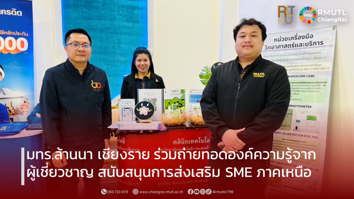 เมื่อวันที่ 28 มกราคม พ.ศ. 2569 มหาวิทยาลัยเทคโนโลยีราชมงคลล้านนา เชียงราย โดยงานวิจัยและบริการวิชาการ คลินิกเทคโนโลยี เข้าร่วมกิจกรรมถ่ายทอดองค์ความรู้และประสบการณ์จาก GURU ผู้เชี่ยวชาญ และปราชญ์ เพื่อสนับสนุนการส่งเสริมผู้ประกอบการวิสาหกิจขนาดกลางและขนาดย่อม (SME) ในพื้นที่ภาคเหนือ ซึ่งจัดโดยสำนักงานส่งเสริมวิสาหกิจขนาดกลางและขนาดย่อม (สสว.) ณ โรงแรมเอ็มบูทีค รีสอร์ท จังหวัดเชียงราย