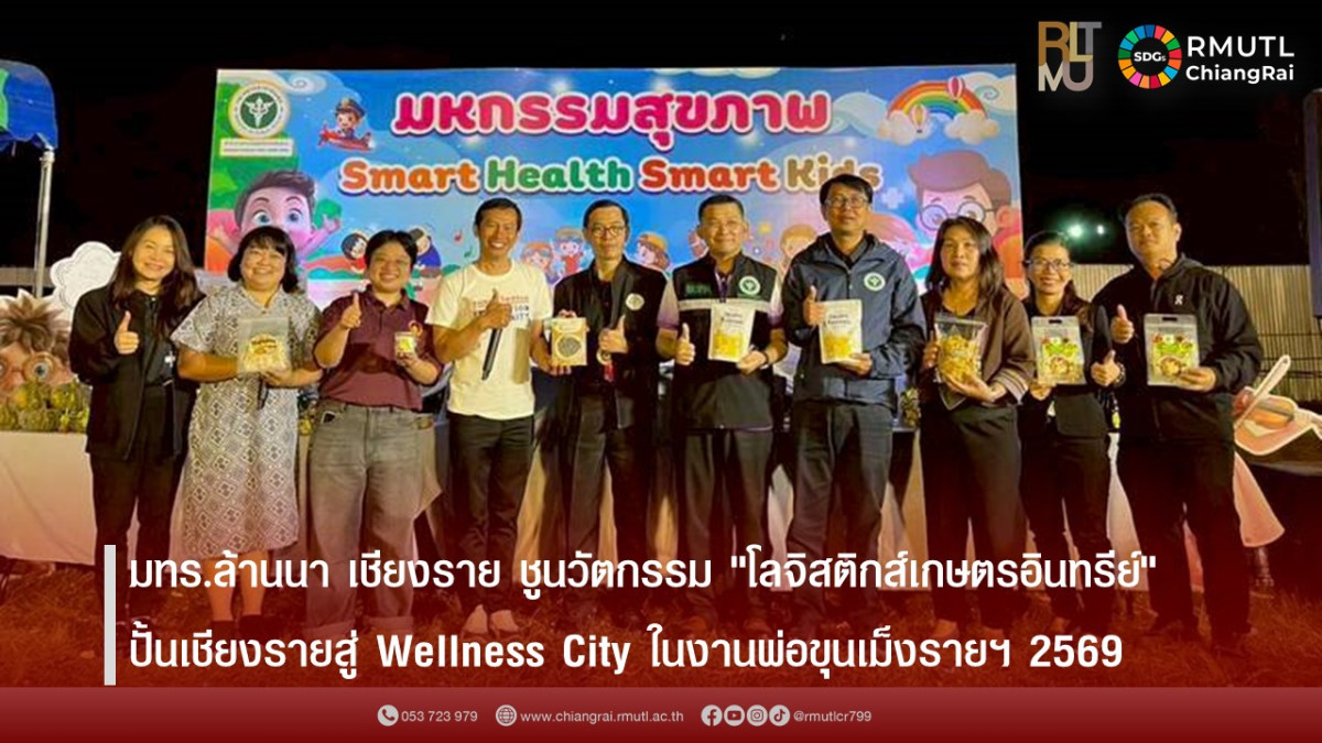 ในระหว่างวันที่ 26 มกราคม 2569 ถึง วันที่ 4 กุมภาพันธ์ 2569 ได้เข้าร่วมแสดงผลิตภัณฑ์ชุมชนที่ผ่านการพัฒนาภายใต้นวัตกรรมสร้างสรรค์มาจัดแสดงเพื่อเพิ่มมูลค่าทางเศรษฐกิจ ในบูธนิทรรศการ Chiang Rai Wellness City ร่วมกับ สำนักงานสาธารณสุขจังหวัดเชียงราย ภายในงานพ่อขุนเม็งรายมหาราชและงานกาชาด ประจำปี พ.ศ. 2569 ณ บริเวณฝูงบิน 416 (สนามบินเก่า) อำเภอเมืองเชียงราย จังหวัดเชียงราย