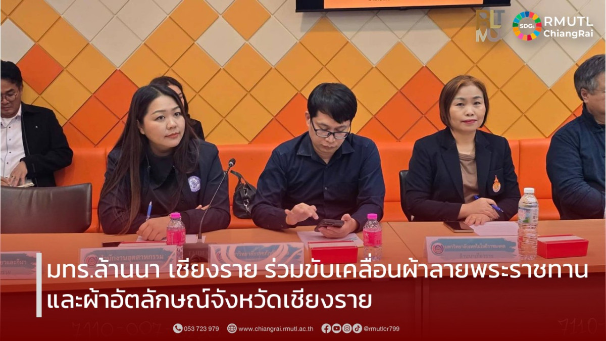 มหาวิทยาลัยเทคโนโลยีราชมงคลล้านนา เชียงราย โดย ดร.ณัฐรกานต์ คำใจวุฒิ อาจารย์ประจำคณะบริหารธุรกิจและศิลปศาสตร์ เข้าร่วมการประชุมเพื่อหารือแนวทางการขับเคลื่อนผ้าลายพระราชทานและผ้าอัตลักษณ์จังหวัดเชียงราย ครั้งที่ 1/2569 จัดโดยสำนักงานพัฒนาชุมชนจังหวัดเชียงราย ณ ห้องประชุมพวงแสด ชั้น 3 ศาลากลางจังหวัดเชียงราย การประชุมดังกล่าวมีหน่วยงานราชการ สถาบันการศึกษา ภาคีเครือข่าย และผู้ผลิตผู้ประกอบการด้านผ้าและหัตถกรรมเข้าร่วม เพื่อบูรณาการความร่วมมือในการยกระดับวงการผ้าไทยจังหวัดเชียงรายอย่างเป็นระบบ