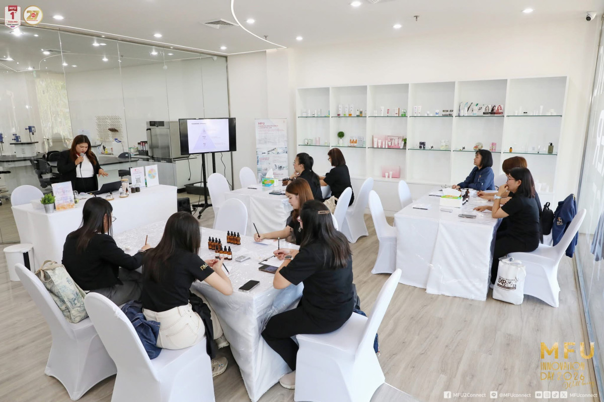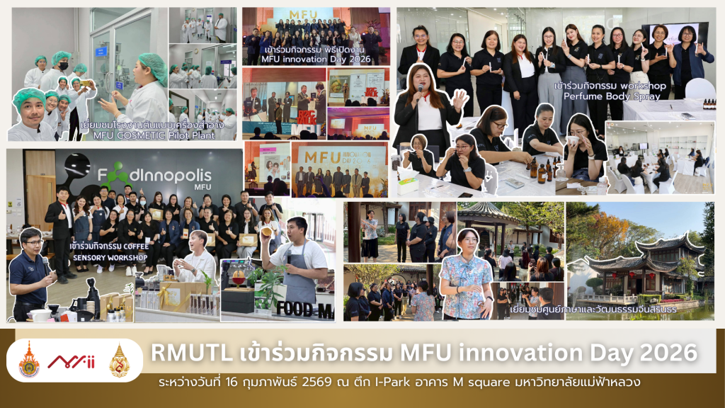 วันที่ 16 กุมภาพันธ์ 2569 คณะบุคลากร มทร.ล้านนา เข้าร่วมกิจกรรม “MFU Innovation Day 2026” ณ มหาวิทยาลัยแม่ฟ้าหลวง ซึ่งจัดขึ้นระหว่างวันที่ 16–17 กุมภาพันธ์ 2569 ณ กลุ่มอาคาร M-Square เพื่อแสดงศักยภาพด้านงานวิจัย เทคโนโลยี และนวัตกรรมของมหาวิทยาลัย พร้อมผลักดันการต่อยอดสู่การใช้ประโยชน์เชิงพาณิชย์ และสร้างเครือข่ายความร่วมมือกับภาคเอกชนและผู้ประกอบการในระดับภูมิภาคและประเทศ ภายในงาน บุคลากร มทร.ล้านนา ได้เข้าร่วมพิธีเปิด และกิจกรรมสำคัญหลากหลาย อาทิ เวทีเสวนา R2C Talk หัวข้อ “Inspiring Innovation Journey: จากงานวิจัยสู่นวัตกรรมที่รุกตลาดได้จริง” กิจกรรม Coffee Sensory Workshop การประยุกต์ใช้องค์ความรู้ด้านจุลินทรีย์ในกระบวนการแปรรูปกาแฟพิเศษ กิจกรรม Cosmetic Training & Mini Workshop เวที “Entrepreneur Launchpad” ฝึกทักษะการนำเสนอไอเดียธุรกิจ กิจกรรม Business Consulting 2026 รวมถึงการ Road Show เยี่ยมชมโรงงานต้นแบบและห้องปฏิบัติการด้านเครื่องสำอาง ทั้งนี้ ยังได้เยี่ยมชมศูนย์ภาษาและวัฒนธรรมจีนสิรินธร เพื่อศึกษาแนวทางการบริหารจัดการพื้นที่เรียนรู้เชิงบูรณาการของมหาวิทยาลัย