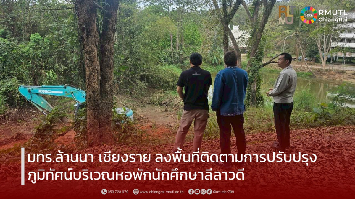 วันที่ 25 กุมภาพันธ์ 2569 มหาวิทยาลัยเทคโนโลยีราชมงคลล้านนา เชียงราย นำโดย ผู้ช่วยศาสตราจารย์ ดร.อังกูร ว่องตระกูล ผู้อำนวยการสำนักงานบริหาร มทร.ล้านนา เชียงราย พร้อมด้วยบุคลากรที่เกี่ยวข้อง ลงพื้นที่ติดตามและตรวจสอบความคืบหน้าการปรับปรุงภูมิทัศน์บริเวณอาคารหอพักนักศึกษาลีลาวดี การดำเนินการดังกล่าวมีวัตถุประสงค์เพื่อพัฒนาสภาพแวดล้อมโดยรอบให้มีความเป็นระเบียบเรียบร้อย สวยงาม และเอื้อต่อการพักอาศัยของนักศึกษา ตลอดจนสร้างบรรยากาศที่ดีและปลอดภัยภายในพื้นที่หอพัก การลงพื้นที่ติดตามงานในครั้งนี้สะท้อนถึงความใส่ใจของมหาวิทยาลัยในการดูแลคุณภาพชีวิตของนักศึกษา ควบคู่กับการพัฒนาสภาพแวดล้อมให้เหมาะสมต่อการใช้ชีวิตและการเรียนรู้อย่างมีประสิทธิภาพ