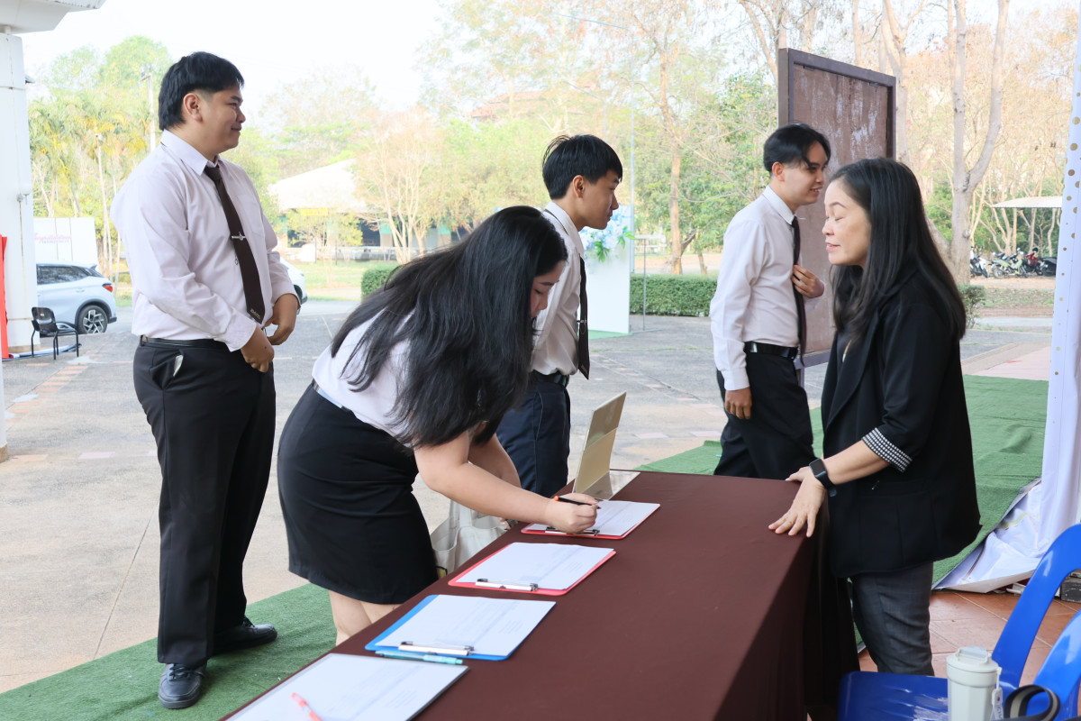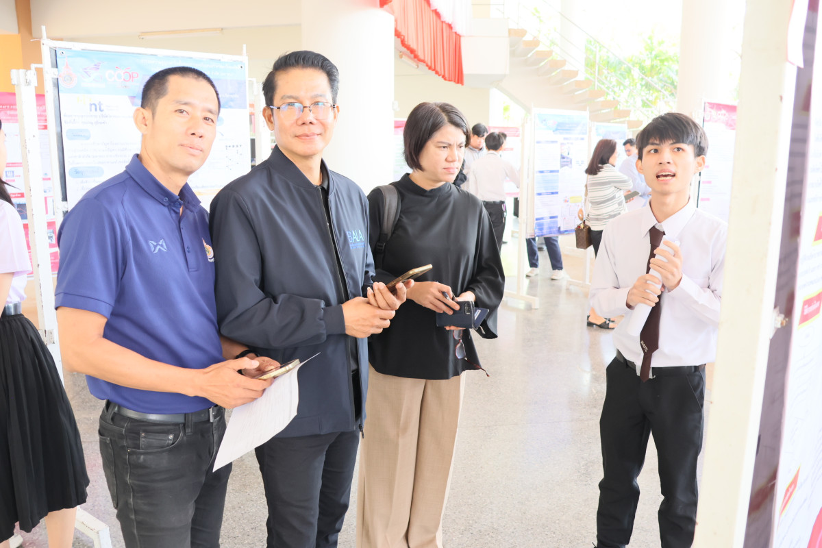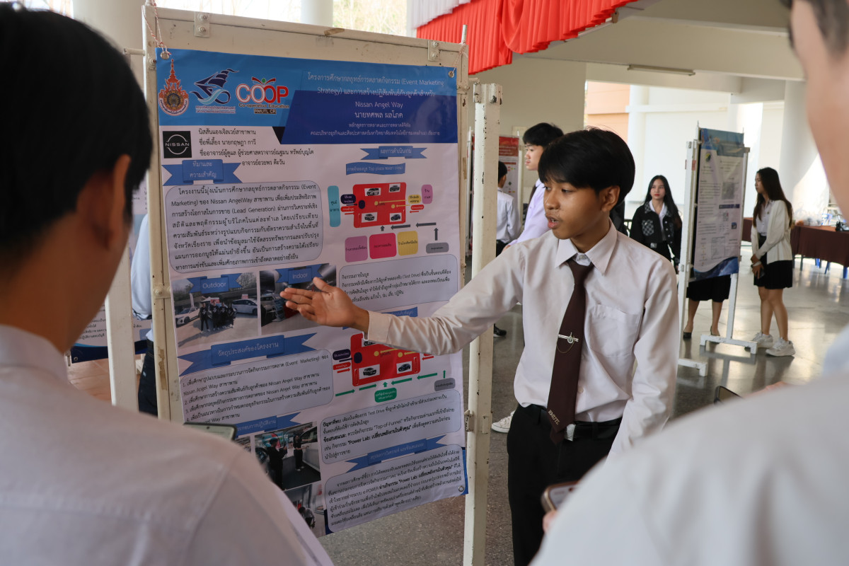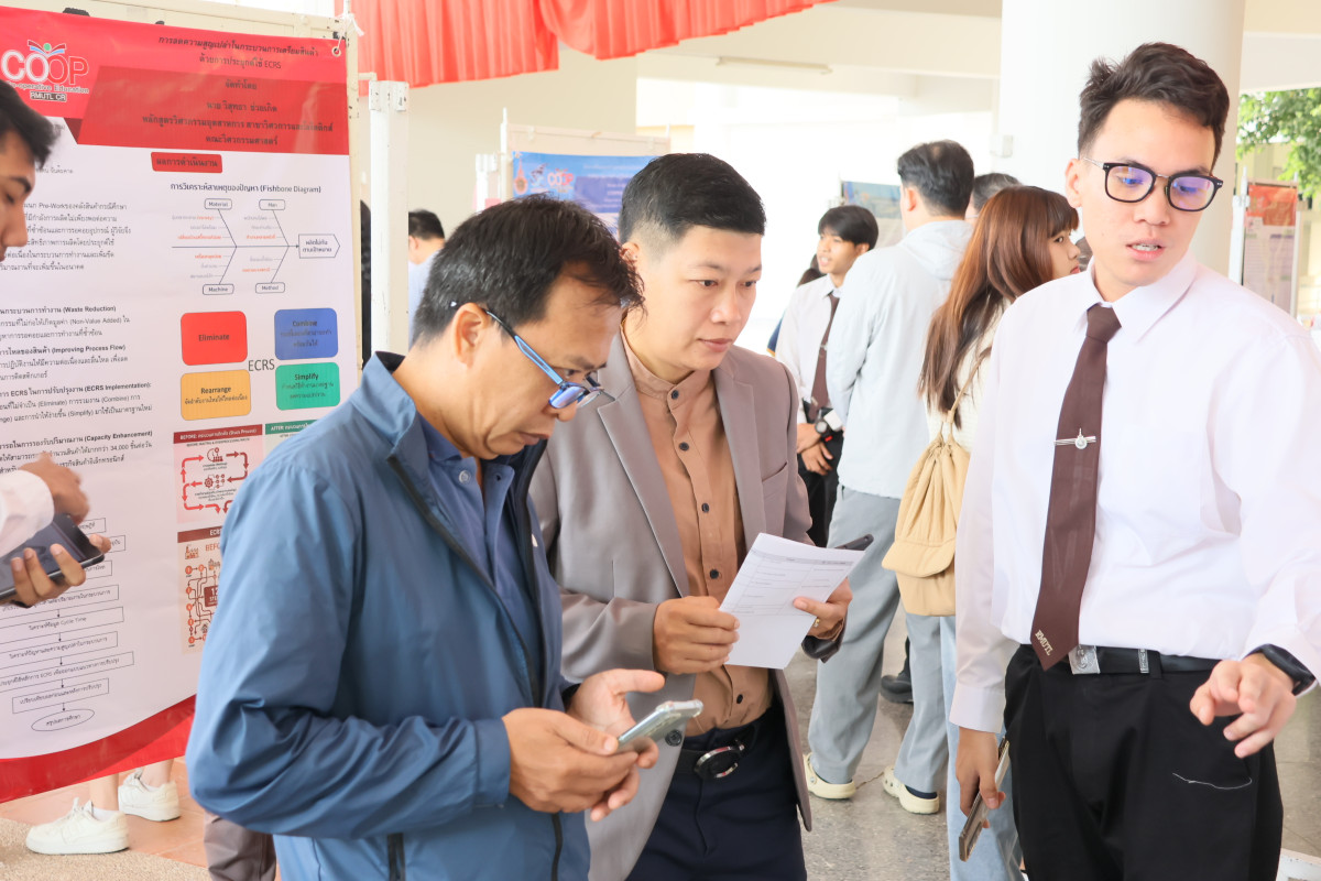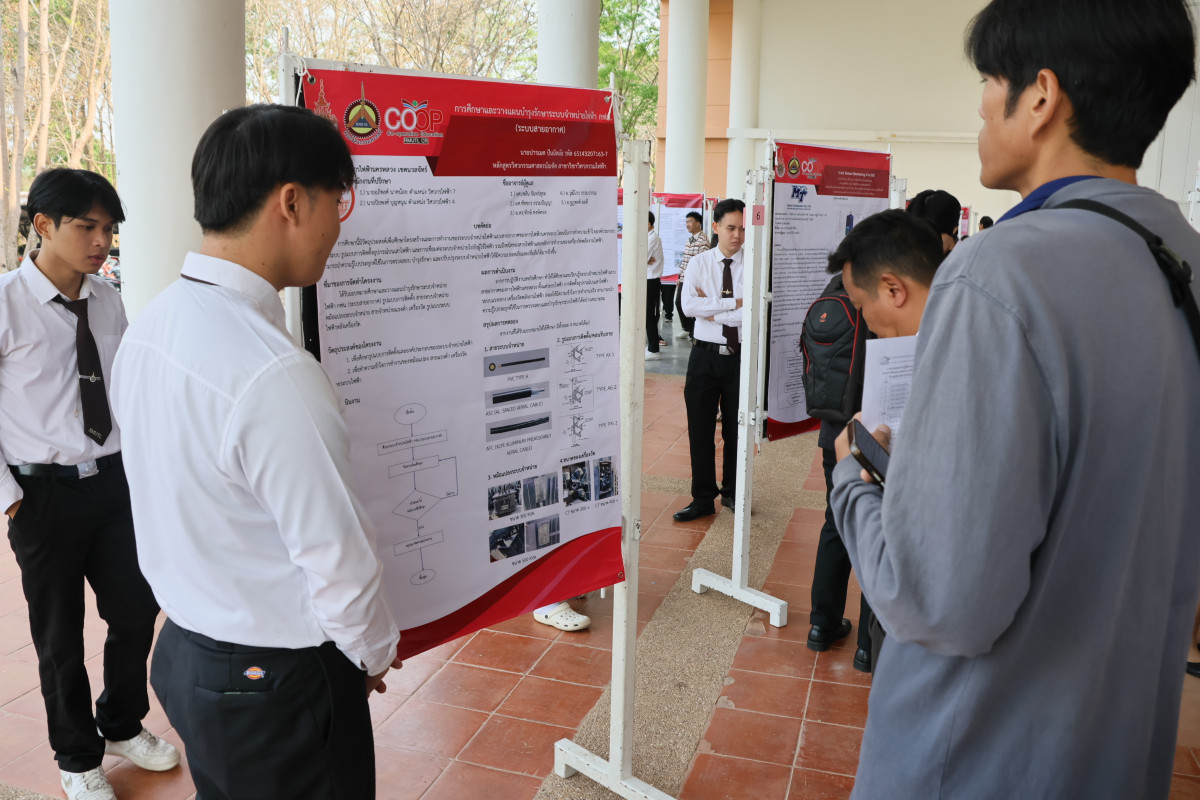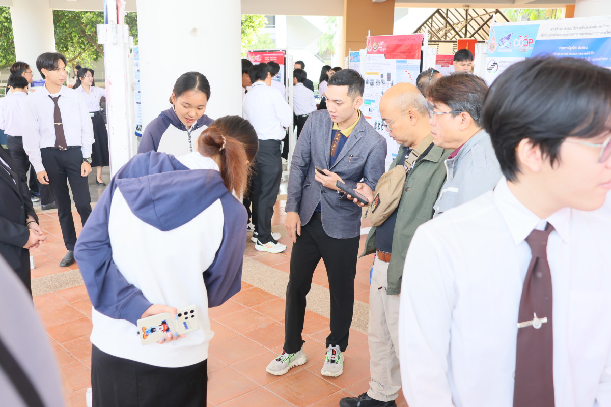 ในการนี้ มีคณาจารย์และนักศึกษาระดับประกาศนียบัตรวิชาชีพชั้นสูง (ปวส.) และระดับปริญญาตรี จากคณะบริหารธุรกิจและศิลปศาสตร์ และคณะวิศวกรรมศาสตร์ เข้าร่วมกิจกรรมอย่างพร้อมเพรียง บรรยากาศเป็นไปด้วยความคึกคักและสร้างสรรค์ โดยนักศึกษาได้นำเสนอผลงานผ่านรูปแบบที่หลากหลาย ทั้งการบรรยายประกอบสื่อ การจัดบูธนิทรรศการ และการแลกเปลี่ยนเรียนรู้ร่วมกัน กิจกรรมดังกล่าวมีวัตถุประสงค์เพื่อสะท้อนผลสัมฤทธิ์ของการจัดการเรียนการสอน ในรูปแบบสหกิจศึกษาและการฝึกงาน ซึ่งมุ่งเน้นการบูรณาการองค์ความรู้ทางวิชาการสู่การปฏิบัติจริงในสถานประกอบการ เสริมสร้างทักษะวิชาชีพ ทักษะการทำงานเป็นทีม ความรับผิดชอบ และการแก้ไขปัญหาเฉพาะหน้า อันเป็นคุณลักษณะสำคัญของบัณฑิตที่พึงประสงค์