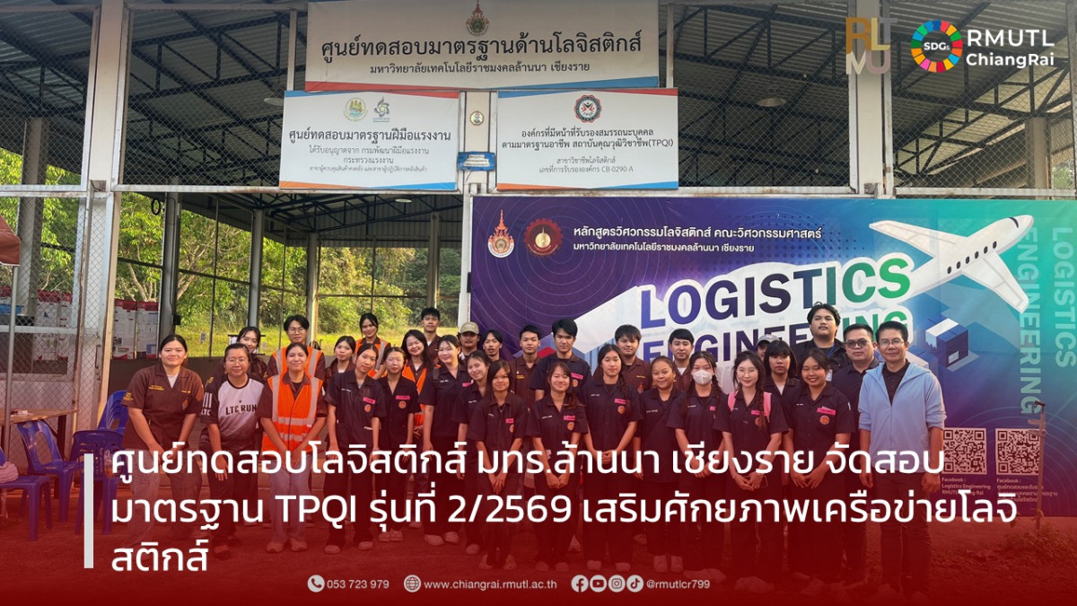 ศูนย์ทดสอบมาตรฐานด้านโลจิสติกส์ โดยหลักสูตรวิศวกรรมโลจิสติกส์ คณะวิศวกรรมศาสตร์ มหาวิทยาลัยเทคโนโลยีราชมงคลล้านนาเชียงราย จัดทดสอบมาตรฐาน ผู้ปฏิบัติการคลังสินค้าระดับ 4 (ครั้งที่2/2569) ภายใต้มาตรฐานสถาบันคุณวุฒิวิชาชีพ (TPQI) ในระหว่างวันที่ 13 - 15 มีนาคม 2569 ณ ศูนย์ทดสอบมาตรฐานด้านโลจิสติกส์ มหาวิทยาลัยเทคโนโลยีราชมงคลล้านนา เชียงราย โดยมีผู้เข้าทดสอบจากเครือข่ายภาคการศึกษาวิทยาลัยอาชีวศึกษาสุโขทัย วิทยาลัยเทคนิคลำพูน มหาวิทยาลัยราชภัฏเชียงราย และผู้ประกอบการด้านโลจิสติกส์ที่สนใจ ทั้งสิ้นจำนวน 60 ท่าน ทั้งนี้เพื่อยกระดับมาตรฐานและรับรองความรู้ความสามารถด้านโลจิสติกส์ ให้กับภาคีเครื่อข่ายโลจิสติกส์ให้มีมาตรฐานและเข้มแข็งต่อไป ทั้งนี้ท่านที่สนใจในการทดสอบและรับรองมาตรฐานสมารถกดติดตามข้อมูลการจัดทดสอบได้ที่ https://www.facebook.com/profile.php?id=100072049465253