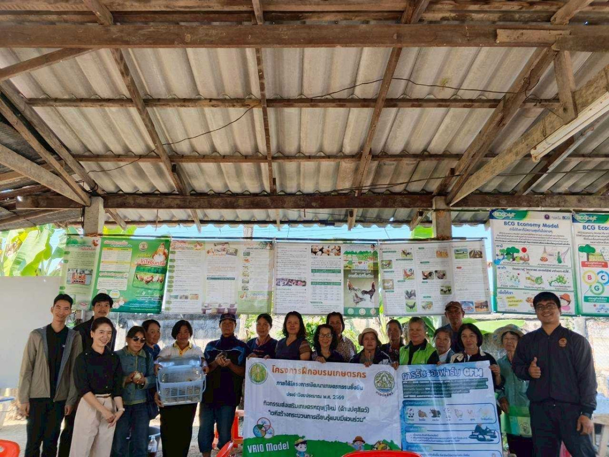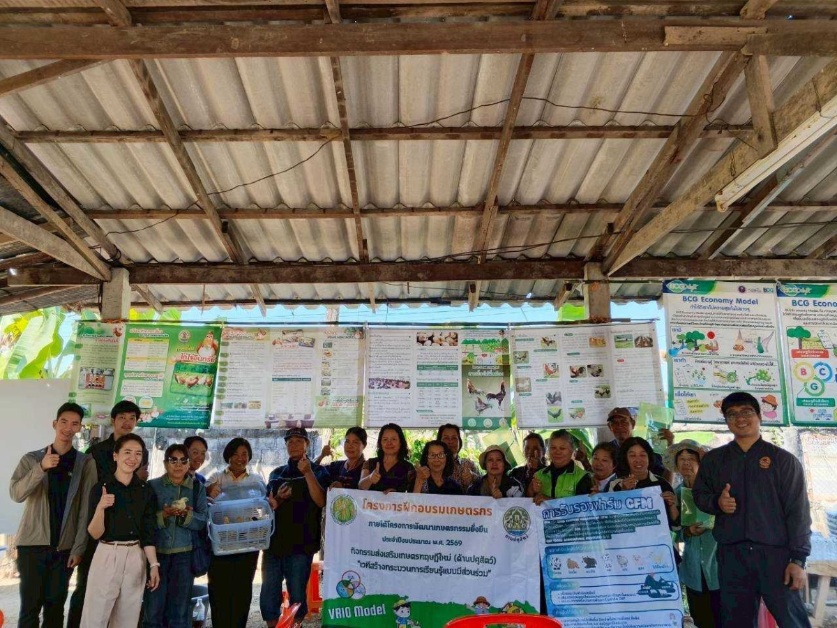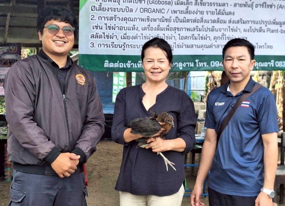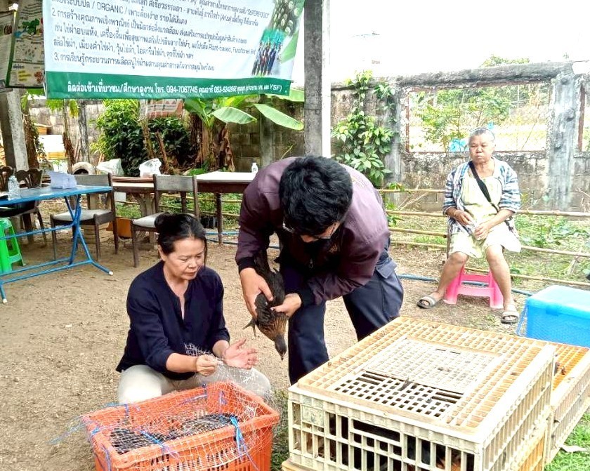 กิจกรรมอบรมใน พื้นที่ตำบลธารทอง อำเภอพาน เน้นกระบวนการเรียนรู้แบบมีส่วนร่วม (Participatory Learning) ให้เกษตรกรวิเคราะห์ศักยภาพตนเองและทรัพยากรชุมชน พร้อมเสริม มาตรฐานฟาร์ม (GFM: Good Farming Management) ครอบคลุมสุขอนามัย การให้อาหาร และการควบคุมโรค เพื่อให้ฟาร์มได้มาตรฐาน ปลอดภัย และต่อยอดสู่ตลาด นอกจากนี้ เกษตรกรยังได้รับการถ่ายทอด แผนธุรกิจและแนวทางเลี้ยงไก่เบตง จาก วิสาหกิจชุมชนท่องเที่ยวเชิงเกษตรและผลิตสินค้าเกษตรเพื่อการส่งออก อำเภอพาน และทาง สำนักงานปศุสัตว์อำเภอพาน สนับสนุนปัจจัยการผลิตด้วยการมอบ ไก่ไข่ครัวเรือนละ 5 ตัว จำนวน 20 ครัวเรือน เพื่อสร้างรายได้และแหล่งอาหารอย่างยั่งยืน
