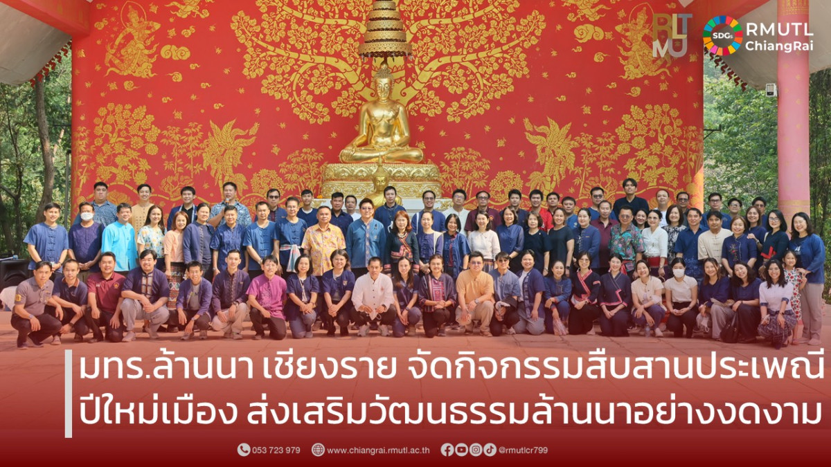 วันที่ 8 เมษายน 2569 มหาวิทยาลัยเทคโนโลยีราชมงคลล้านนา เชียงราย นำโดย ผู้ช่วยศาสตราจารย์ ดร.อังกูร ว่องตระกูล ผู้อำนวยการสำนักงานบริหาร พร้อมด้วยคณะผู้บริหาร คณาจารย์ และบุคลากร ร่วมจัดกิจกรรม “สืบสานประเพณีปีใหม่เมือง” เพื่ออนุรักษ์และส่งเสริมศิลปวัฒนธรรมท้องถิ่นล้านนา กิจกรรมจัดขึ้น ณ ลานธรรมพระเจ้าทันใจ และอาคารโรงอาหาร มทร.ล้านนา เชียงราย ภายในงานประกอบด้วยพิธี สรงน้ำพระเจ้าทันใจ เพื่อความเป็นสิริมงคล และพิธี รดน้ำดำหัวอาจารย์อาวุโส ซึ่งเป็นการแสดงความเคารพและขอพรตามขนบธรรมเนียมประเพณีล้านนา