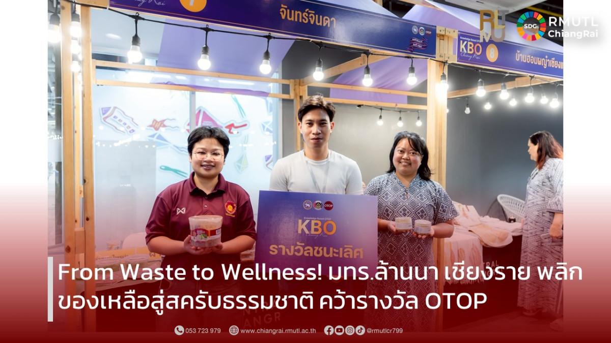 มหาวิทยาลัยเทคโนโลยีราชมงคลล้านนา เชียงราย เดินหน้าขับเคลื่อนงานวิจัยและนวัตกรรมสู่การใช้ประโยชน์เชิงพาณิชย์ โดยบูรณาการความร่วมมือกับสำนักงานพัฒนาชุมชน เครือข่ายวิทยากรถ่ายทอดองค์ความรู้จากหน่วยงานภาครัฐ และผู้ประกอบการในพื้นที่ ร่วมพัฒนาผลิตภัณฑ์ชุมชน “สครับจากเมล็ดและใบฝรั่งกิมจู” ภายใต้แบรนด์ “จันทร์จินดา” จนสามารถคว้ารางวัลชนะเลิศการประกวดผลิตภัณฑ์ OTOP เด่น จังหวัดเชียงราย ประจำปี 2569 ภายใต้โครงการ Knowledge-Based OTOP (KBO) การประกวดจัดขึ้นเมื่อวันที่ 7 เมษายน 2569 ณ ลานจริงใจมาเก็ต ศูนย์การค้าเซ็นทรัลเชียงราย โดยมีวัตถุประสงค์เพื่อยกระดับศักยภาพผู้ประกอบการ OTOP สู่ตลาดสมัยใหม่ และส่งเสริมการพัฒนาผลิตภัณฑ์ด้วยองค์ความรู้ เทคโนโลยี และนวัตกรรม